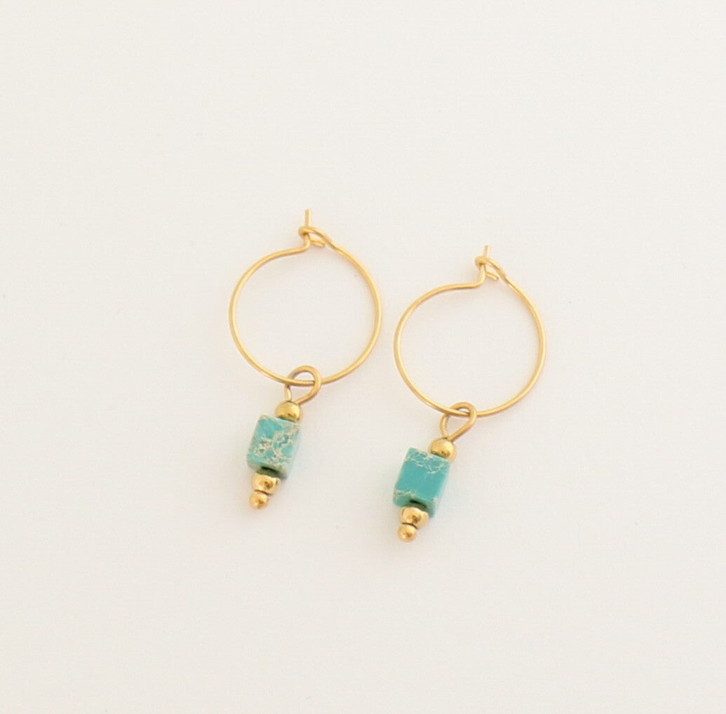Stainless steel oorbellen met natuursteen turquoise.